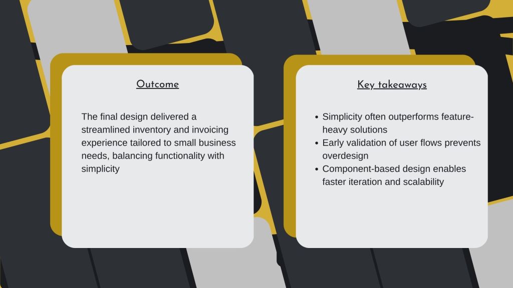 The experience supported both physical and digital inventory in a single workflow, improving accessibility and efficiency for small business owners.