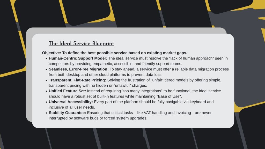I analysed QuickBooks, FreshBooks, Xero, and Zoho Management, evaluating them against persona needs.